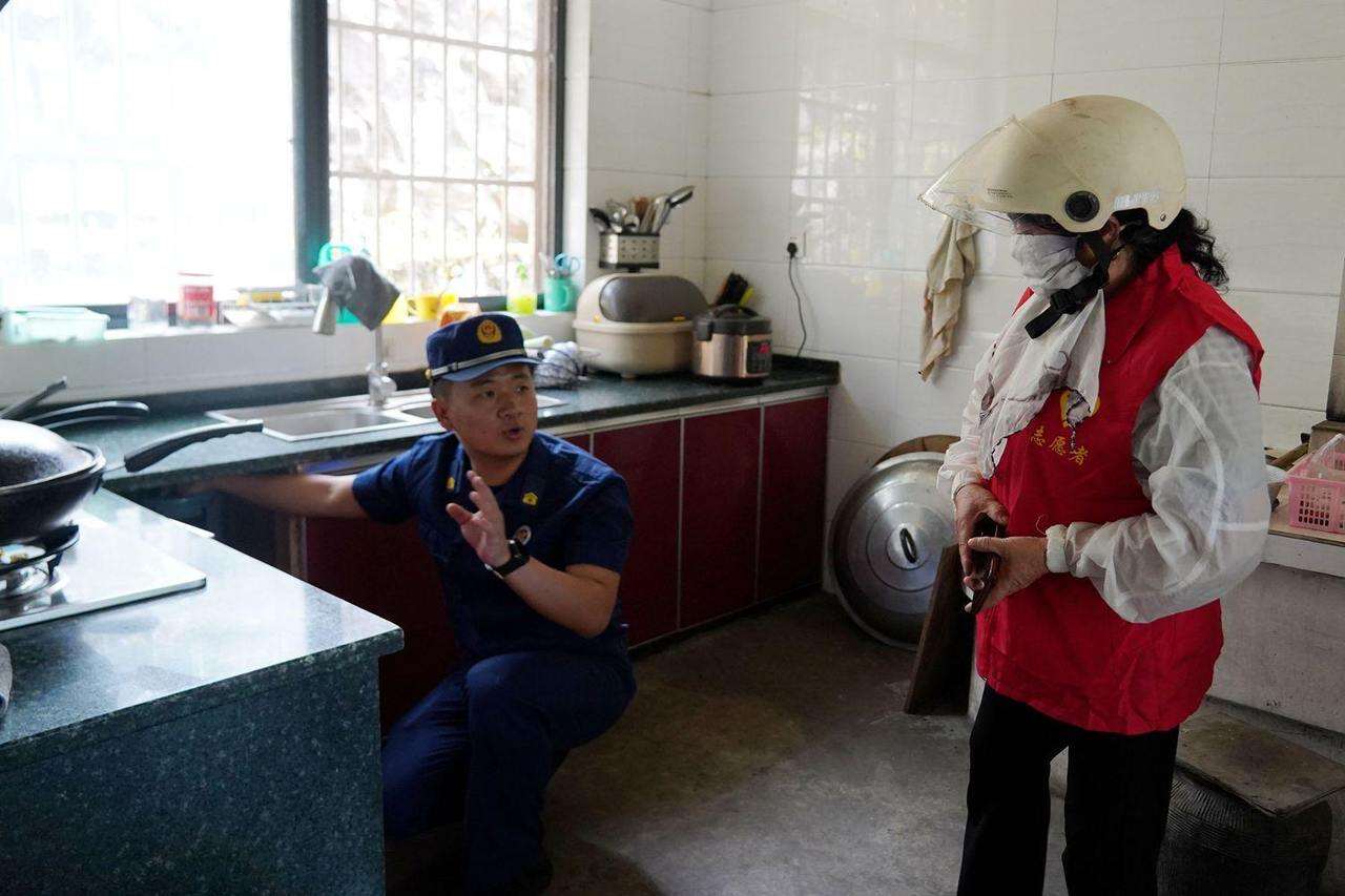 不仅如此,消防宣传小分队还多次走进汪家村老年食堂——这里既是老人们的“饭堂”,也是“村美团”骑手的送餐出发点。“做饭时人不能离灶台,万一烧干锅就危险了”“食堂的灭火器要放在显眼处,方便拿取”“油锅起火千万别用水泼,先盖锅盖再断电”“用灭火器前先拔插销,喷嘴要对准火根喷……”消防员结合老年食堂和老人家庭的实际场景,现场演示隐患检查方法,手把手教骑手使用消防器材,让安全技能真正融入他们的送餐工作。