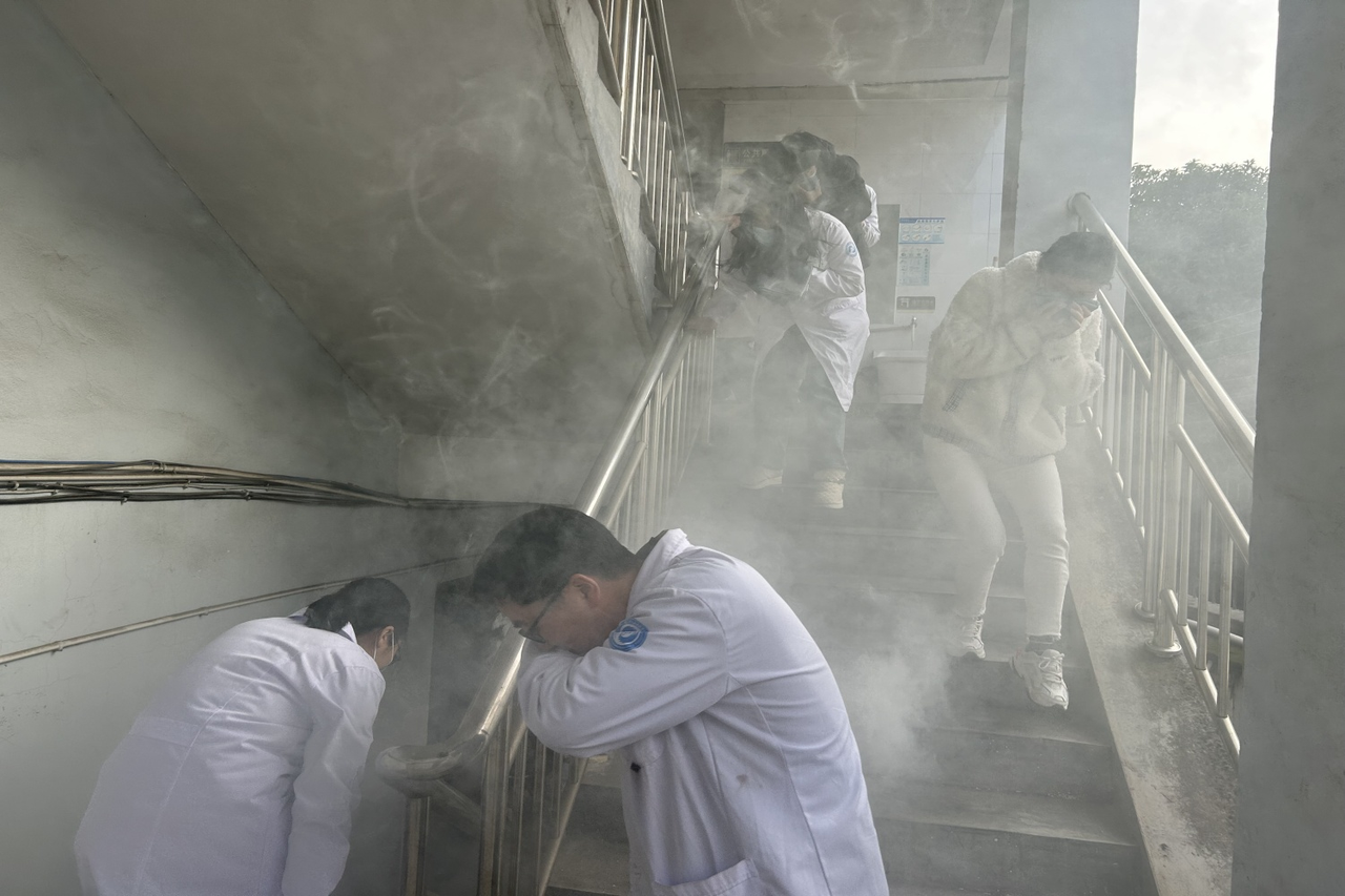 “靶向式”多元宣教,拉紧消防意识防控线。构建“分层分类+场景融入”宣传体系,组织宣传人员走进医疗机构,针对医护、安保、后勤等不同岗位特性,定制精准化理论课程,融合案例剖析与互动问答提升实效。突出实操训练核心地位,在专业指导下,参训人员密集开展灭火器、水带、消火栓操作训练,系统演练初期火灾扑救流程及多场景疏散指挥。同时,通过播放宣传小喇叭、悬挂宣传横幅、安装栅栏牌、张贴公益广告等方式,多渠道、高密度、全方位进行社会宣传氛围营造,做到宣传深入人心。