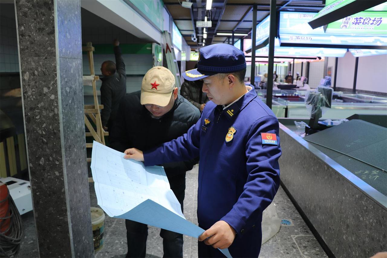 在新西城菜市场,消防监督人员针对菜市场人员密集、摊位众多、布局复杂等特点,重点对菜市场内消防设施是否齐全有效,疏散通道、安全出口是否保持畅通,电气线路是否规范敷设等关键环节进行实地排查。