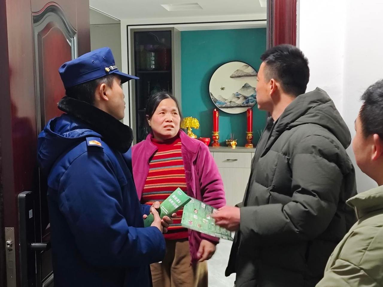 敲门入户送安全,精准宣传暖民心。深入开展消防安全“进家庭”及敲门行动,聚焦独居老人、留守儿童等弱势群体,逐户发放宣传手册,讲解冬季用火用电用气常识、“三清三关”要求及火场逃生技巧。现场帮居民排查家中电器线路、燃气灶具等隐患,手把手演示灭火器使用方法,将安全知识送到群众心坎上。