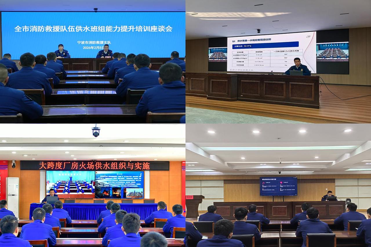 浙江在线2月6日讯 为进一步夯实灭火救援基础,提升供水班组组织指挥与综合保障能力,1月30日至2月5日,宁波市消防救援支队采取“线上+线下”的培训模式,组织开展全市消防救援队伍供水班组能力提升培训,全市消防救援站共272名指战员参训。期间,黄华副支队长出席培训班动员会,就供水班组建设目标和能力提升提出具体要求。