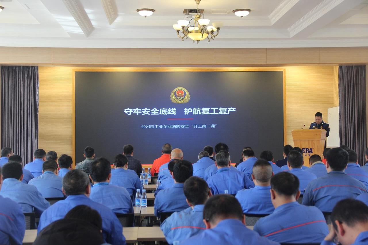 浙江在线3月2日讯 为筑牢节后复工复产安全防线,扎实推进节后企业安全“收心归位”,2月27日上午,台州市暨黄岩区安全生产“开工第一课”在公元股份有限公司顺利举办。本次活动由台州市安全生产委员会办公室、台州市应急管理局主办,黄岩区应急管理局、黄岩区消防救援局承办,聚焦复工复产关键节点,以消防安全为重点,把理论授课、警示教育、实战演练有机结合,为企业复工复产拧紧“安全阀”,筑牢“防护网”。
