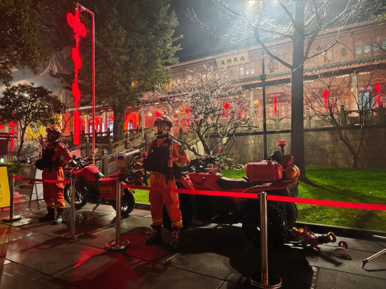 深化实战备勤,守牢应急处置线。大队针对文物建筑特点,修订“一场所一预案”,对灵隐寺、净慈寺、岳王庙等文物单位开展实战化演练16次,熟悉地形、水源与疏散路线。优化前置备勤与联勤联动机制,健全完善文物场所消防安保工作体系,春节期间在灵隐、天竺、净慈寺等重点区域设立3个现场指挥部,实行“定点值守+动态巡防”,累计巡查180余次。重点时段派驻12名骨干驻点监护,配备便携灭火器材,确保突发情况“1分钟响应、3分钟到场”,坚决守住文物安全底线。
