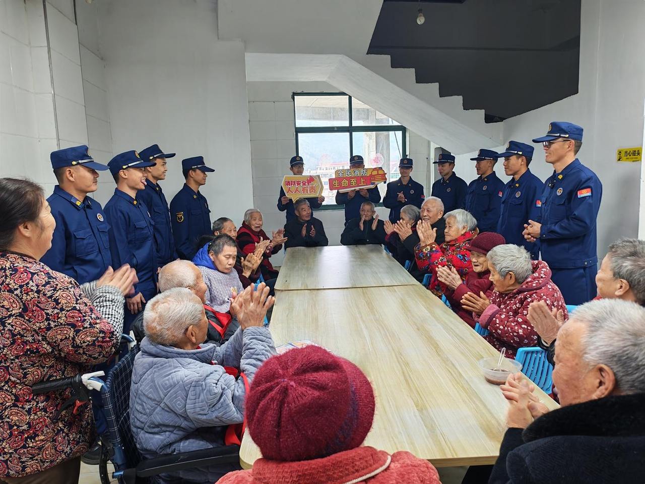在义乌市鸿佰洲养老服务中心,来自苏溪镇专职消防队的队员们一进门就熟门熟路地与老人唠起了家常。“奶奶,房间里的大功率电器可不能用了,容易跳闸着火。”“爷爷,躺在床上吸烟最危险,咱得改改这个习惯。”为了让老人们听得懂、记得住,消防员们特意使用方言与老人交流,在轻松愉快的氛围中普及消防安全常识。