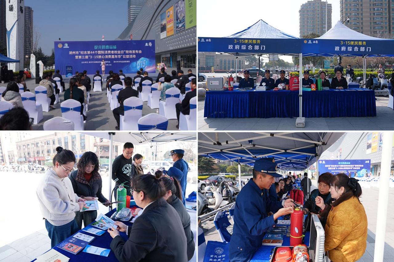 浙江在线3月16日讯 为切实增强人民群众的消防产品质量意识,着力量提升假冒伪劣消防产品辨识能力,有效净化消防产品市场环境,维护消费者合法权益,3月13日,湖州市消防救援支队以市消保委第三届“3·15放心消费嘉年华”公益活动为契机,联合市场监管、市质检院在织里镇吾悦广场举行“3·15”消防产品主题宣传活动,以接地气的形式,把消防安全知识送到群众身边。