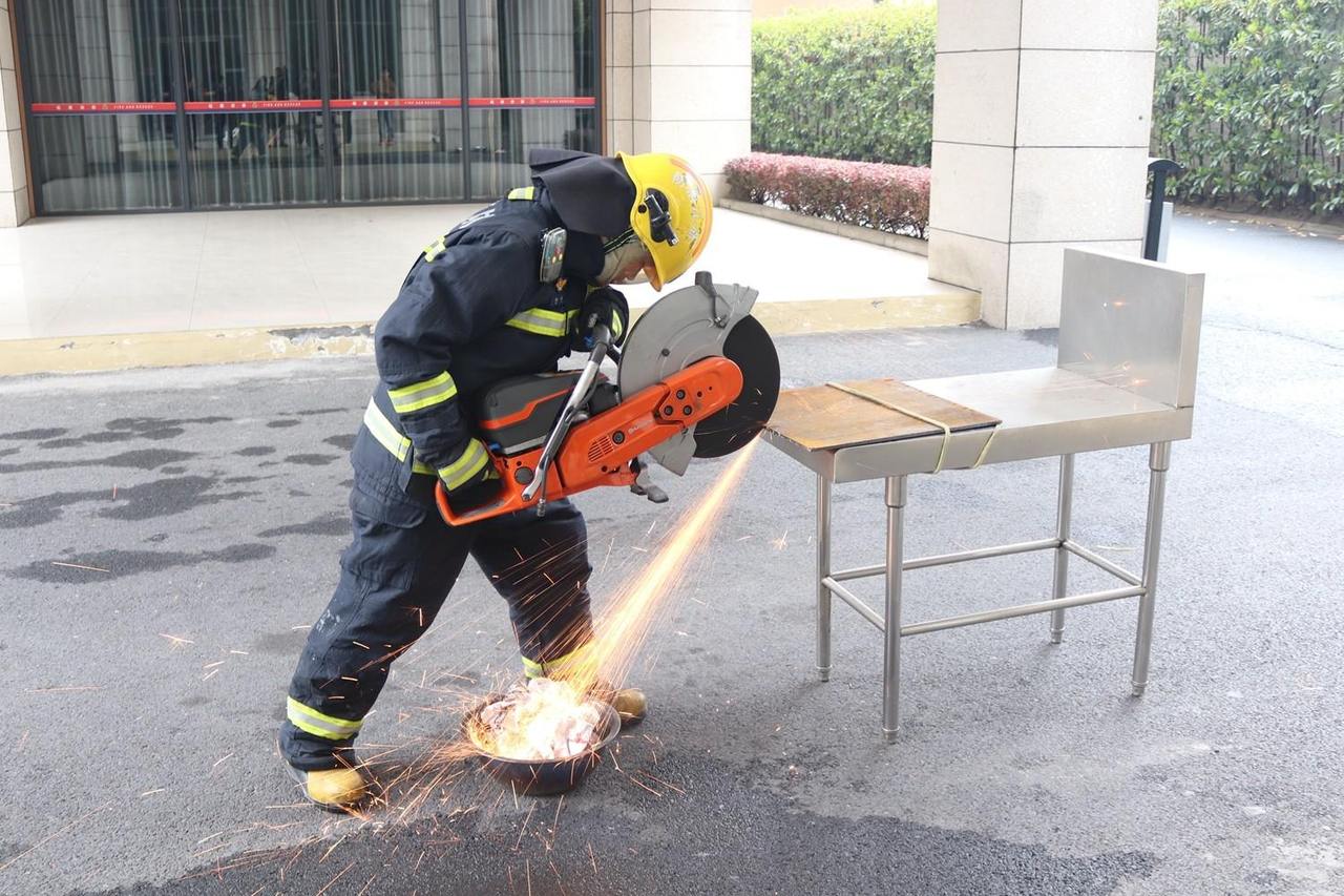 实验中,消防员准备了施工现场常见的木屑、棉布、纸张、泡沫等易燃杂物,在距离可燃物1米处进行切割作业。伴随着四溅的火花,炽热的熔渣不断掉落,木屑很快冒出青烟,约20秒便蹿起明火。实验显示,相同距离下,纸张、棉布约10秒即可被引燃,木屑、泡沫约20秒发生燃烧,塑料30秒后发生阴燃产生刺鼻气味。