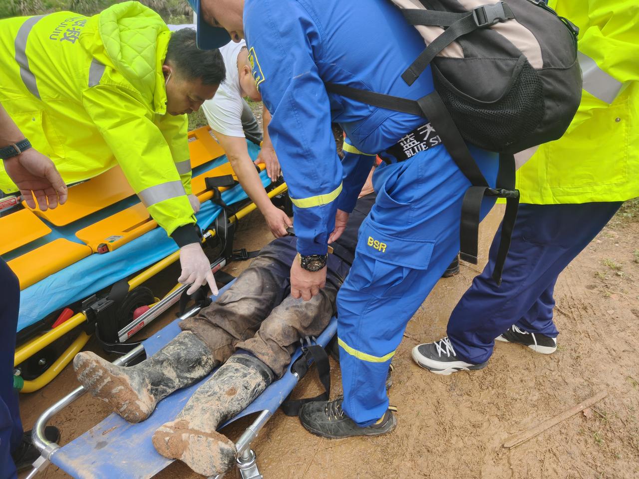 消防员小心翼翼地抬着担架,沿着湿滑的山路缓慢下行,避开陡坡等危险路段,全程做好防护措施,确保被困人员安全。12时05分,被困人员被成功转移至山下等候的救护车上,交由医护人员进一步救治。目前,被困人员经医护人员救治,伤情稳定,无生命危险。